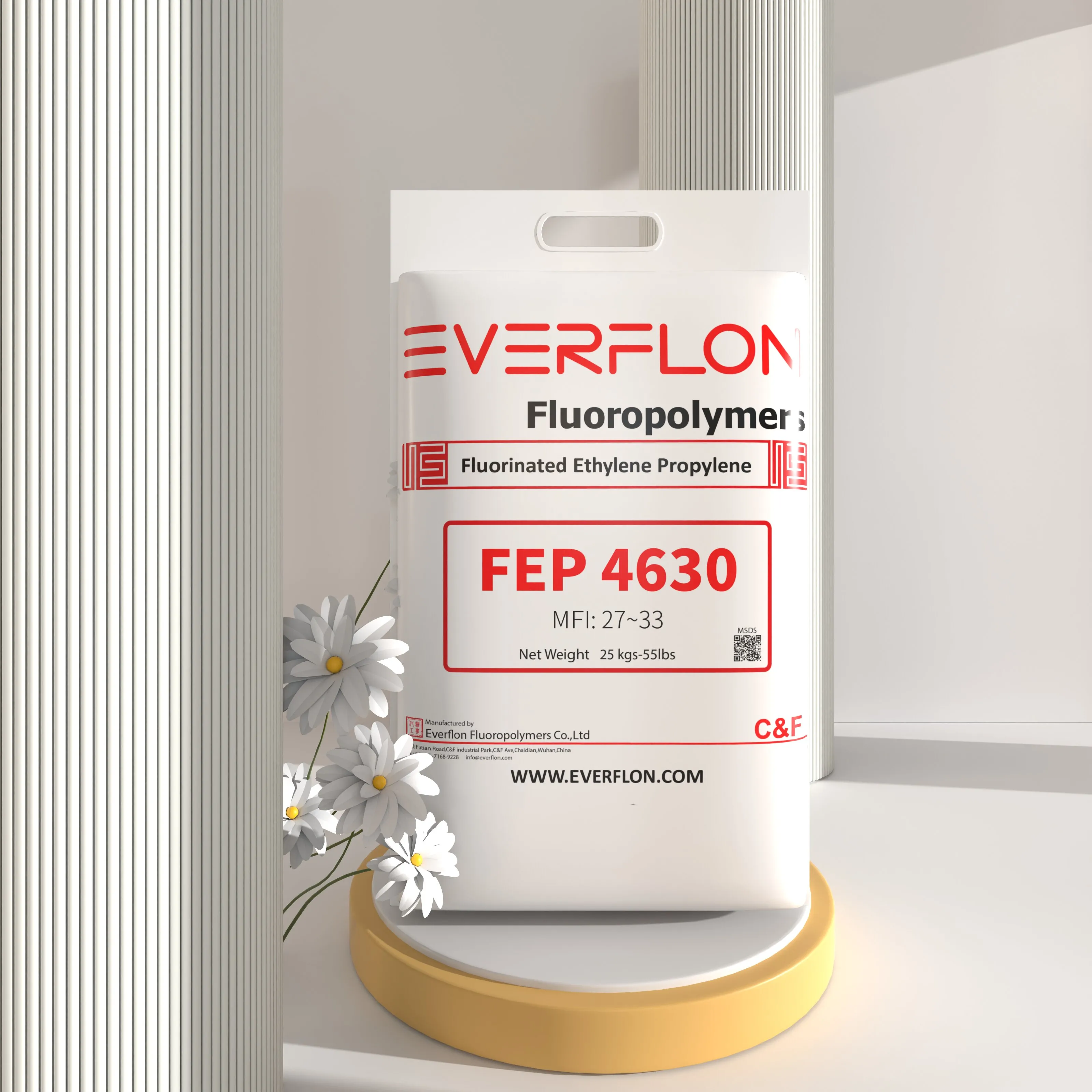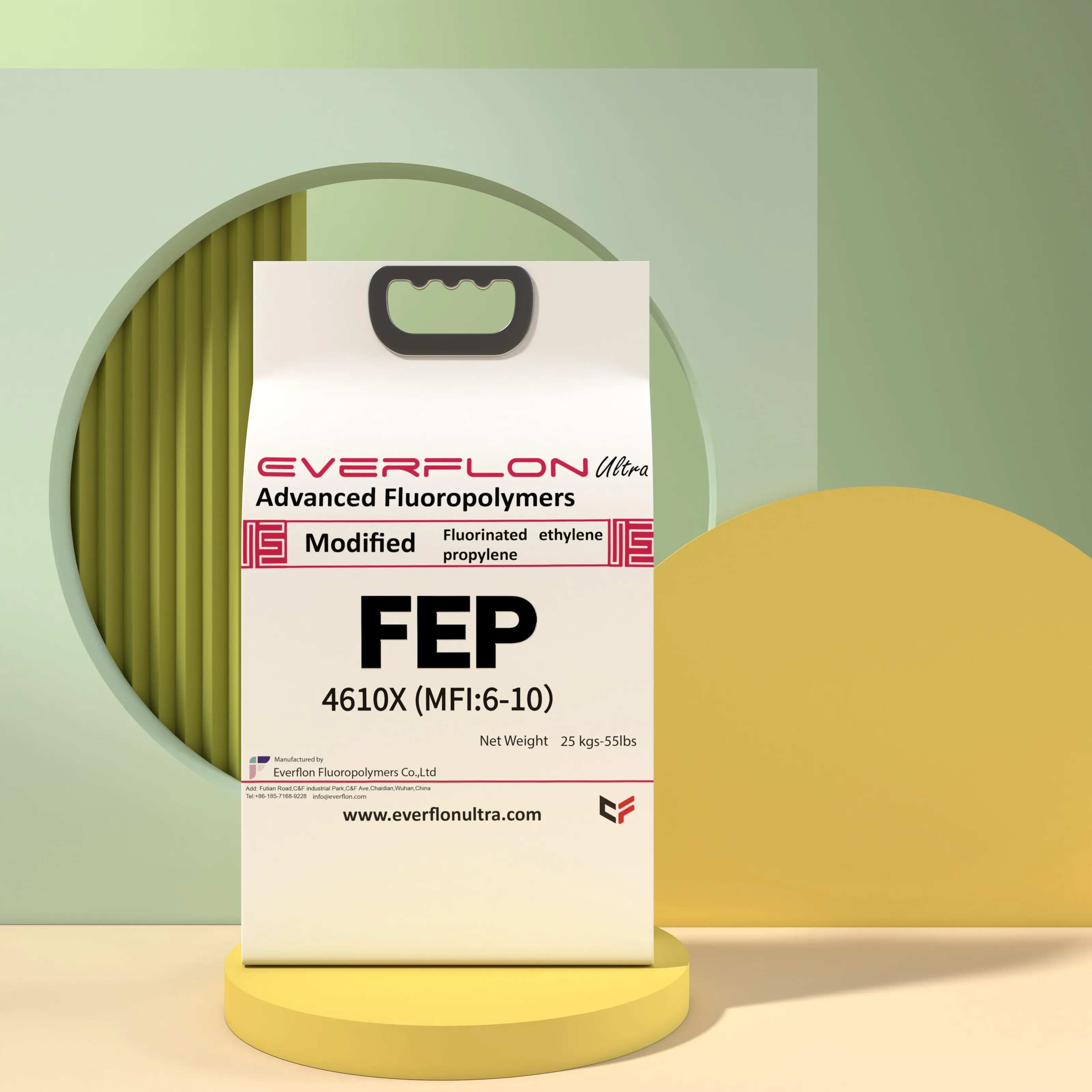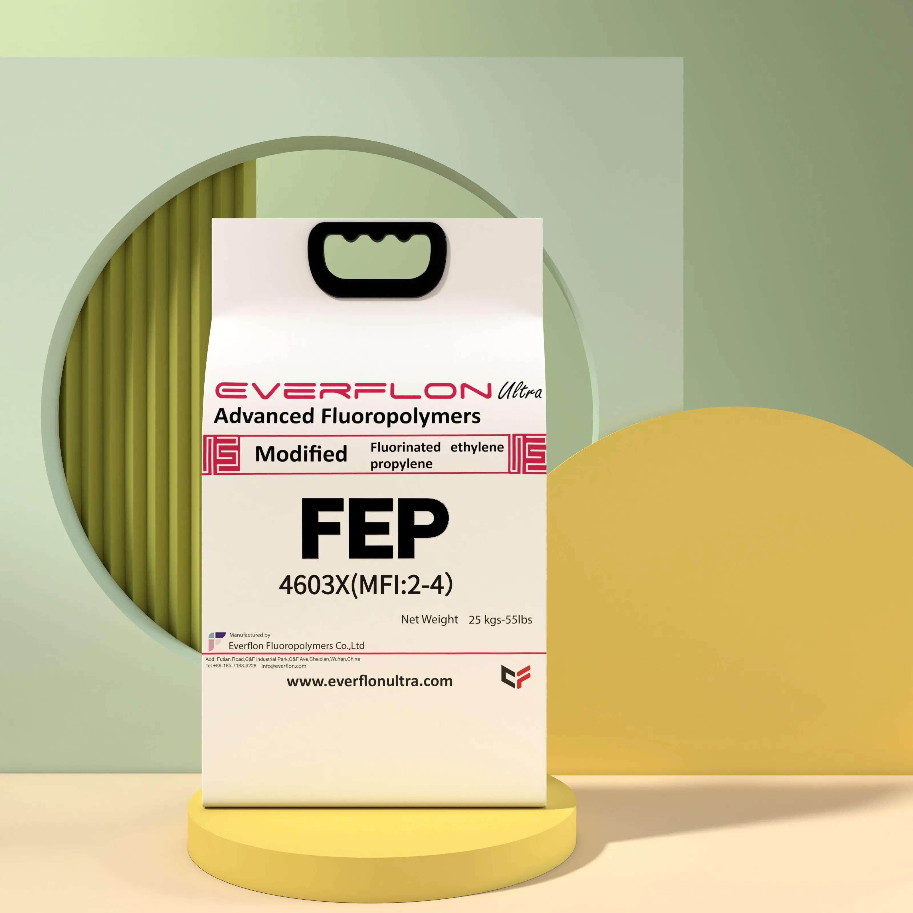 Everflon™ FEP is packaged in 25-kg, single layer, plastic bags. For convenient shipment, orders of 1000-kg gallary are recommended.