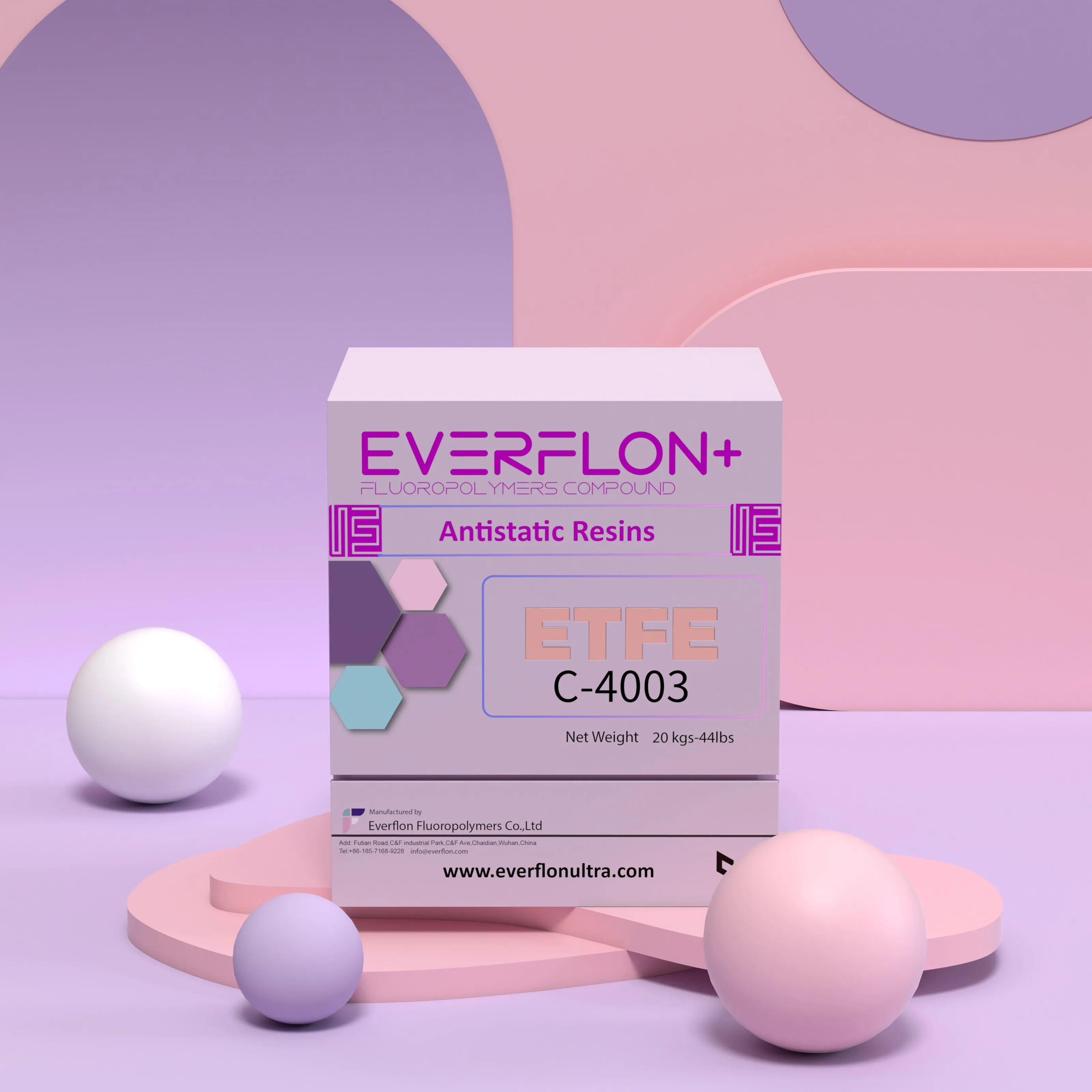 Everflon+™ ETFE C4003 resin combines the chemical and high-temperature resistance of Everflon™ ETFE with antistatic levels of electrical conductivity. Everflon+™ ETFE C4003 and the other Everflon™ ETFE fluoroplastics are melt processible, modified copolymers of ethylene and tetrafluoroethylene. They are high-performance resins that can be processed at relatively high rates, compared to other fluorocarbon resins. They are mechanically tough and offer an excellent balance of properties.